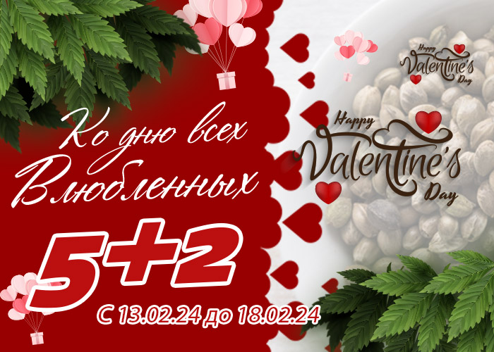 Только с 13 по 18 февраля, при покупке ПЯТИ семян конопли, GanjaSeeds добавит в заказ ДВЕ семечки абсолютно БЕСПЛАТНО.