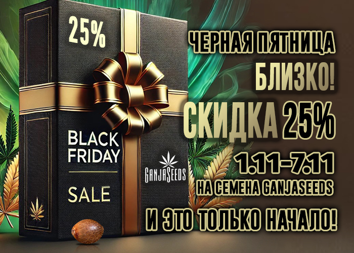 С 1 ноября, все подписчики интернет-магазина GanjaSeeds получат промокоды на скидку 25%, которые будут действовать до 7 ноября.